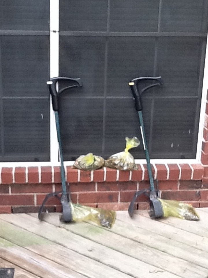 I was thrilled to hear him tell me tonight, however, that putting the bags into the outgoing trash would be tomorrow mornings first job. Whew! Needless to say I breathed a quiet sigh of relief. It’s a great feeling knowing that my hubby hasn’t started collecting THAT stuff. It’s bad enough that we scoop it up, usually, before it has a chance to get cold. There’s nothin’ worse than stepping into a fresh pile (unless, of course, one of us had decided to let it accumulate on the deck,  that is).